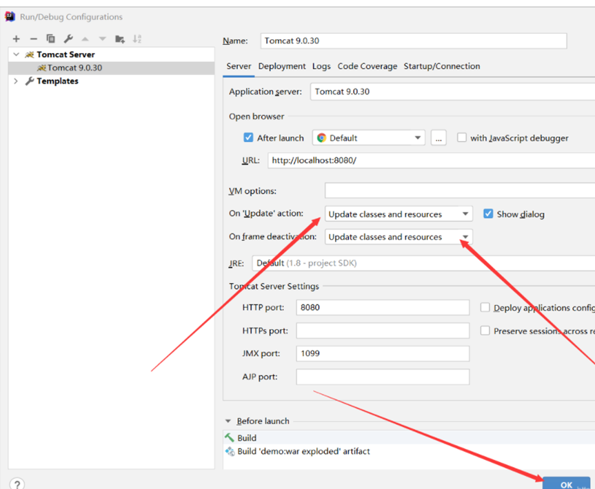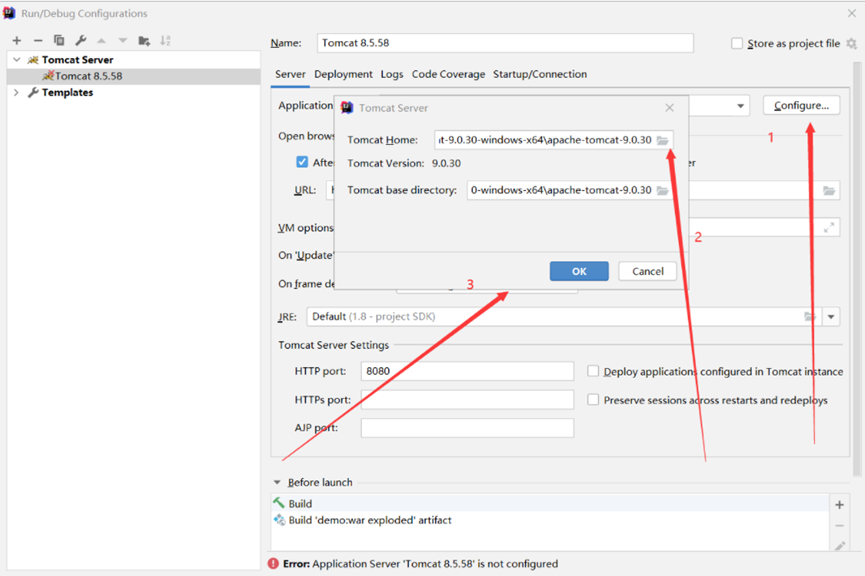 - HTTP port 可以指定运行 Tomcat 端口, 不会修改 server.xml, 只是针对当前配置;
