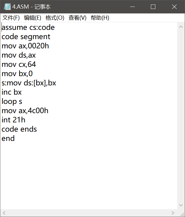 综合使用 loop,[bx],编写完整汇编源程序,实现向内存 0:200~0:23F 依次传送数据 0~63(3FH)。 综合使用loop, [bx], mov实现