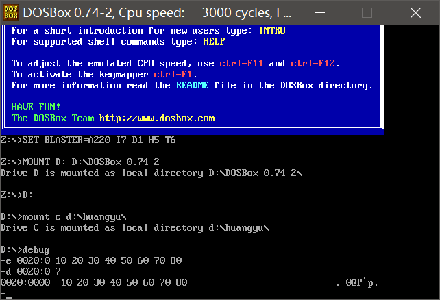 ①使用e命令修改0020:0~0020:f数据,并查看修改内容