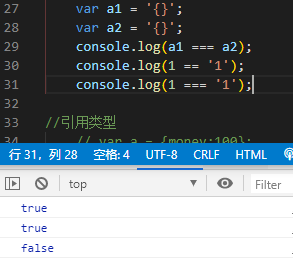 ② 引用类型的比较是引用地址的比较