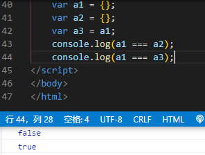 两个空对象在堆内存中的地址不一样,所以即使两个一模一样的对象也不一定相等,而a3和a1他们的指针是指向堆内存的同一个地址的所以输出true。