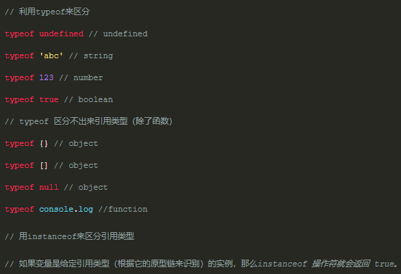② 引用类型使用instanceof检测数据类型;