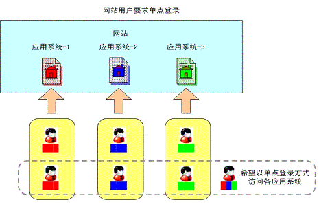 在网站建设的过程中,多个应用系统一般是在不同的时期开发完成的。各应用系统由于功能侧重、设计方法和开发技术有所不同,也就形成了各自独立的 用户库和用户认证体系。随着网站的发展,会出现这样的用户群体:以其中的一个用户为例,他(她)使用网站的多个应用系统,但在每个应用系统中有独立的账 号,没有一个整体上的网站用户账号的概念,进入每一个应用系统前都需要以该应用系统的账号来登录。这带给用户不方便的使用感受,用户会想:既然我使用的是 同一个网站上的应用,为什么不能在一次在网站上登录之后不必再经过应用系统认证直接进入应用系统呢?用户的要求我们称之为 "单点登录"。