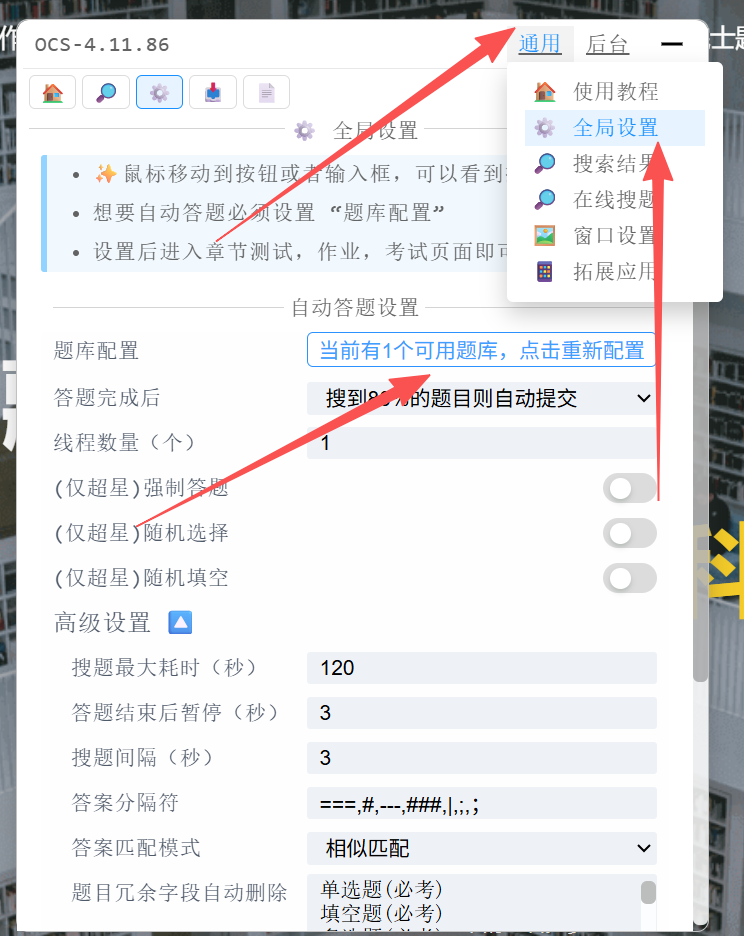 - 题库并不总能成功答题,建议开启ai搜题功能