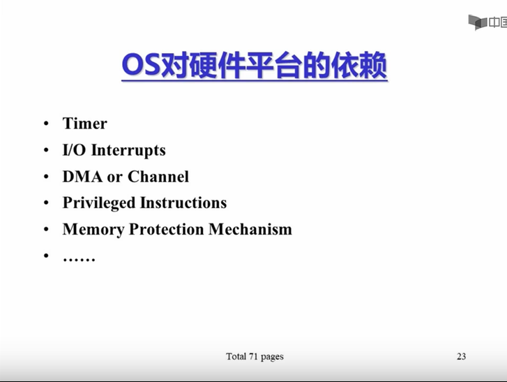 计时器、中断机制、DMA、特权指令(进程并发章节)、存储保护机制(存储地址转换 MMU)