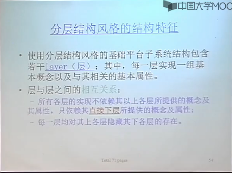 (1)分层结构:不利于提高基础平台子系统的时间和空间效率,必须严格按照规定,一层一层访问