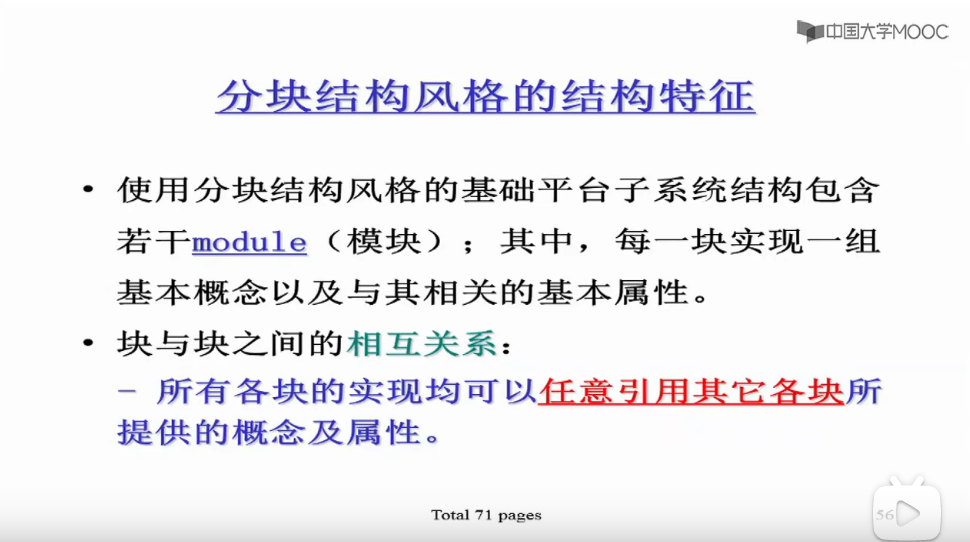 (2)分块结构:不利于实现基础平台子系统的灵活性,当分的模块数量过多时,相互调用频繁,任何一个模块的修改都有可能影响其他模块,维护起来难度大