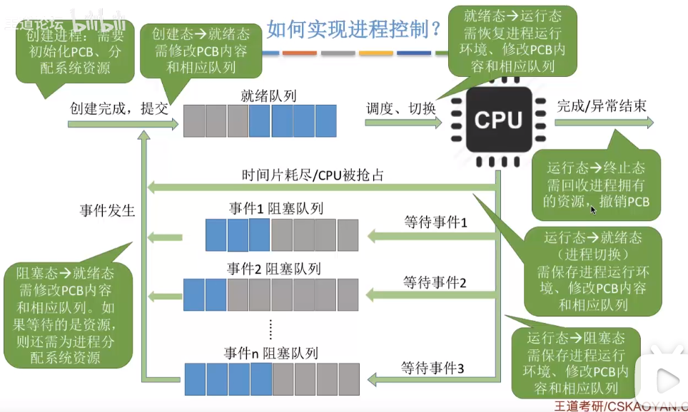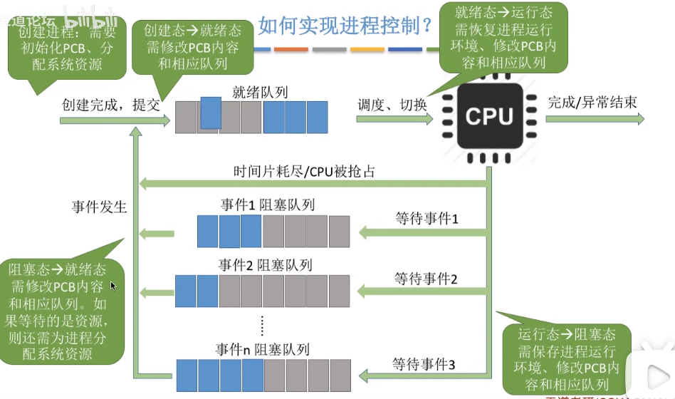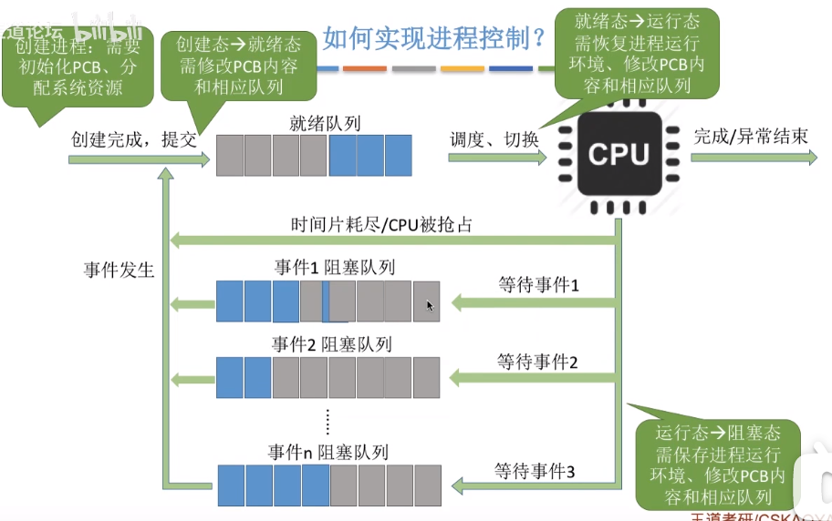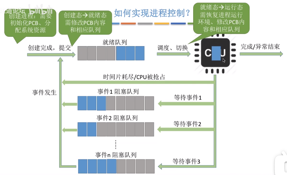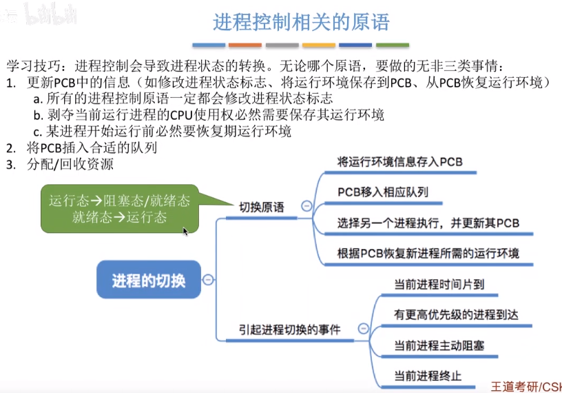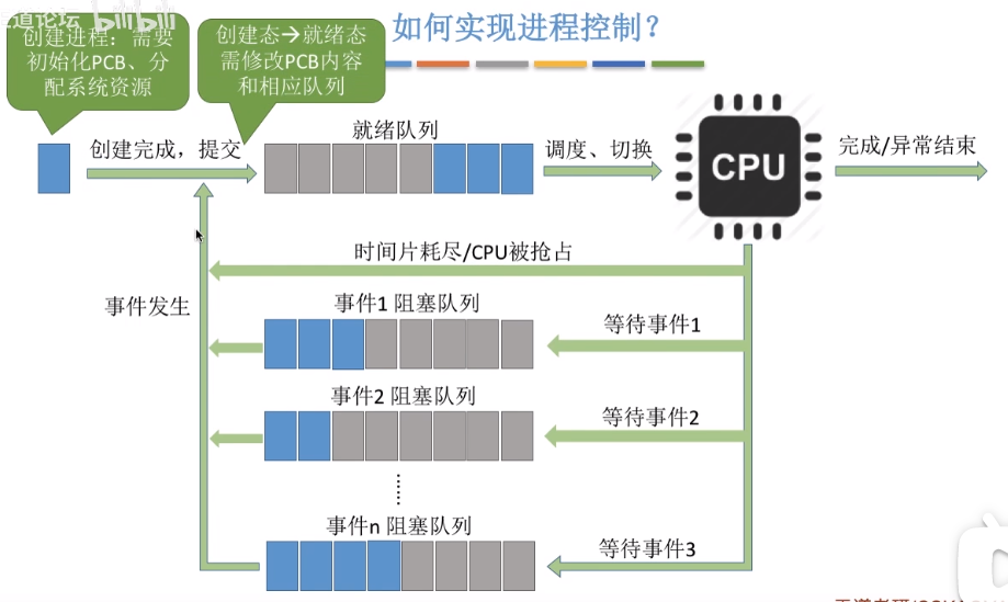 把PCB放到正确的队列当中,并且保证PCB当中数据同时被修改 --> 原语来实现
