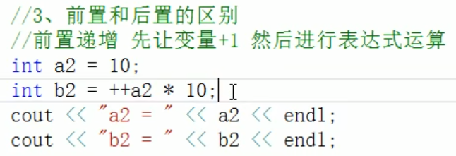 总结:前置递增先对变量进行++,再计算表达式,后置递增相反