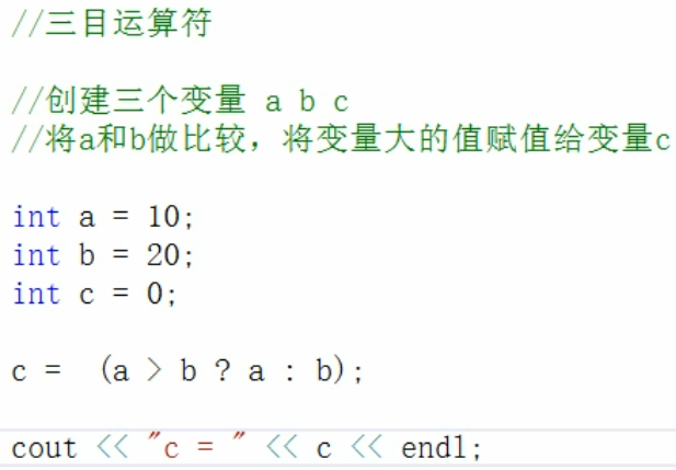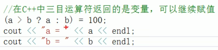- 在C++中三目运算符返回的是变量,可以继续赋值