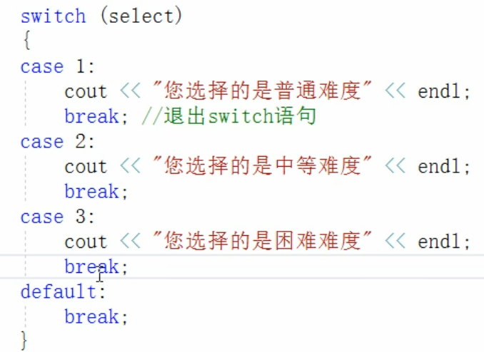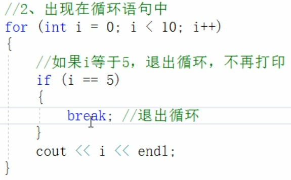 - 出现在switch条件语句中,作用是终止case并跳出switch