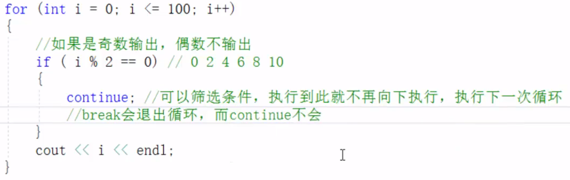 continue并没有使整个循环终止,而break会跳出循环
