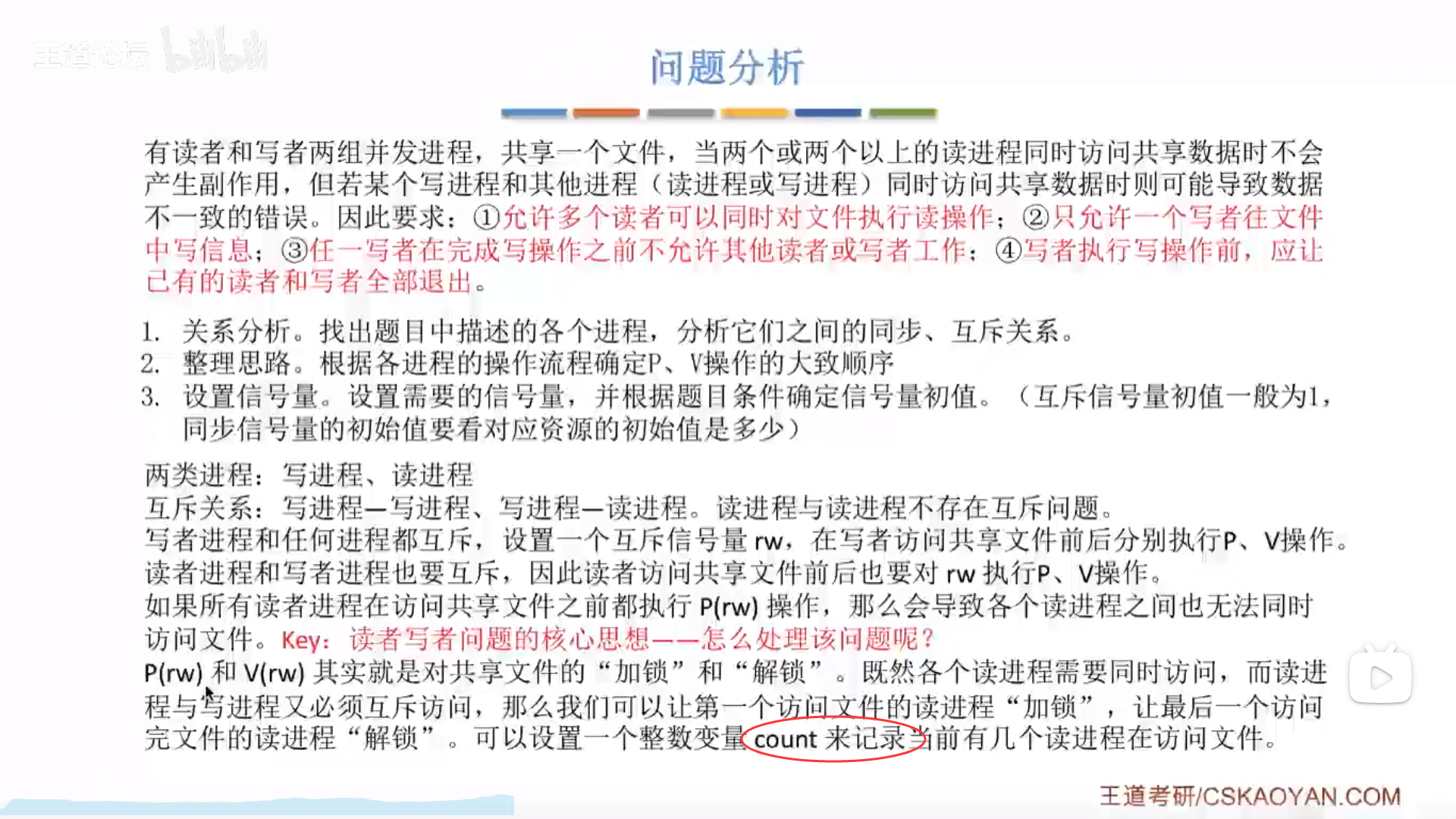 如果所有读者进程在访问共享文件之前都执行P(rw)操作,那么会导致各个读进程之间也无法同时访问文件。