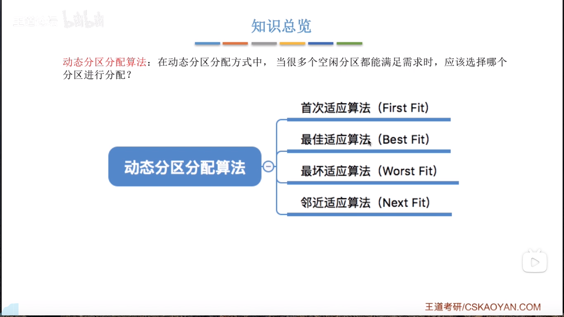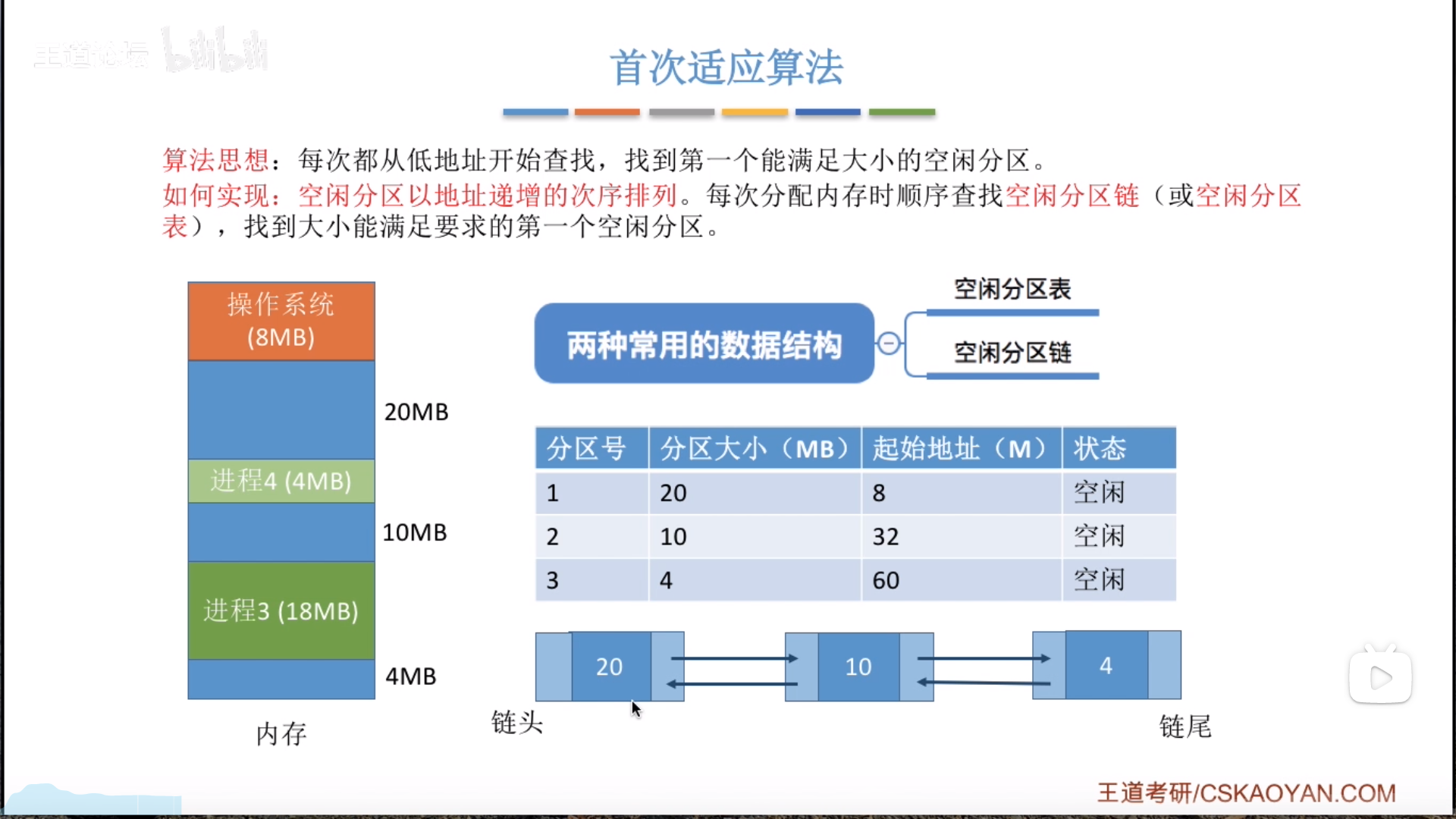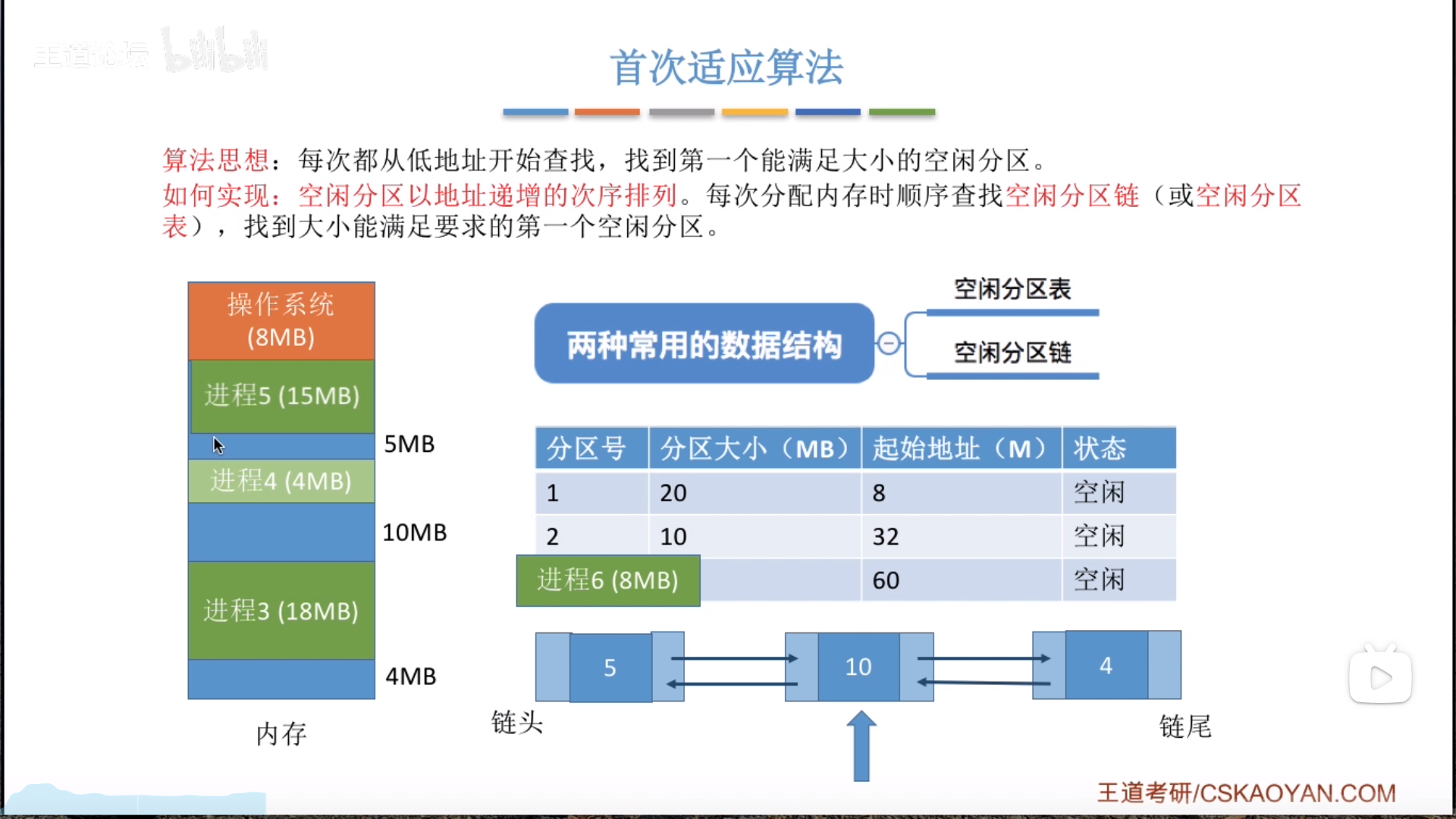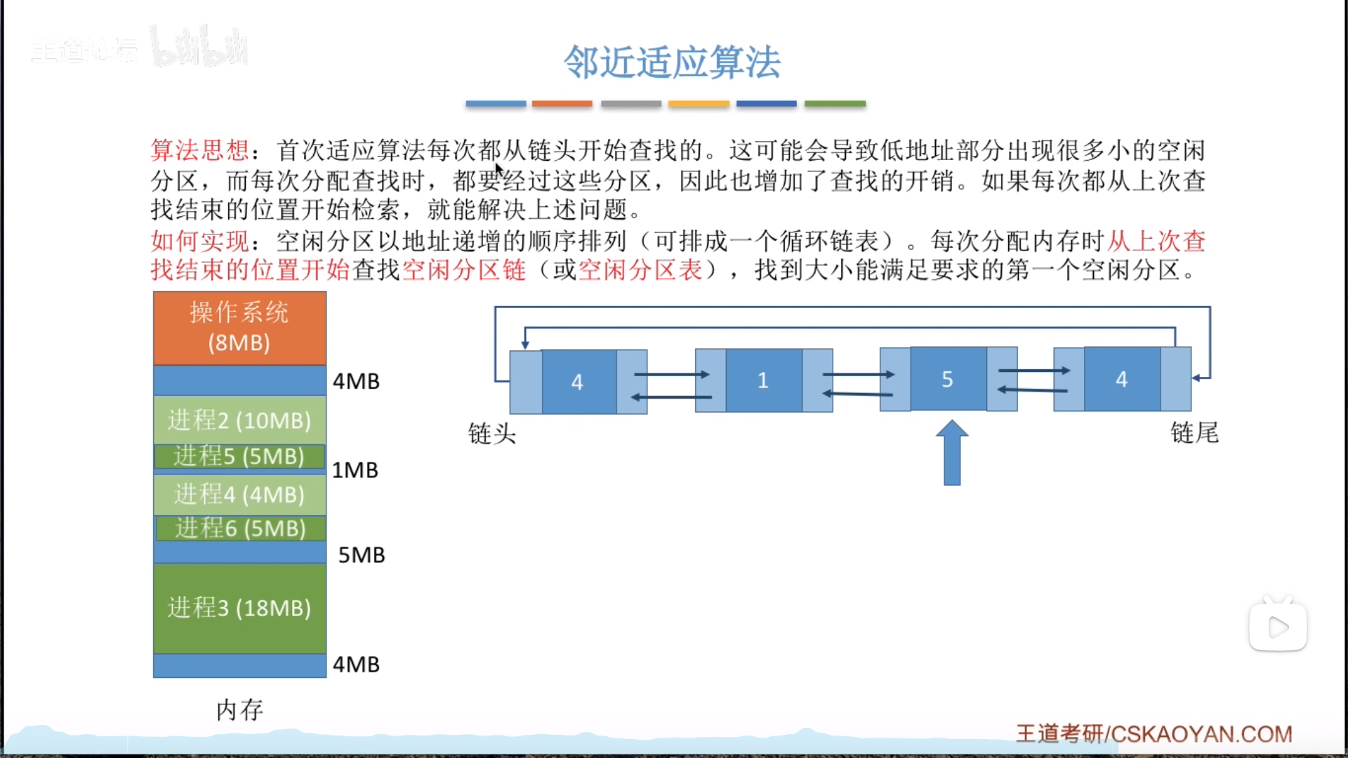 算法开销大小问题:为了保证空闲分区按照规定次序排列,在最佳适应和最坏适应这两种算法中需要经常对整个空闲分区链进行重新排序,这就导致了算法开销更大的问题,而首次适应和邻近适应不需要对整个空闲分区链进行顺序的检查和重新排序,所以开销就更小