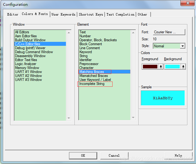 点击【Edit】->【Configuration】打开配置窗口,点击Colors&Fonts,如下