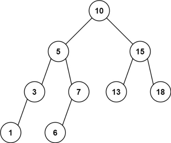 输入:root = [10,5,15,3,7,13,18,1,null,6], low = 6, high = 10 输出:23