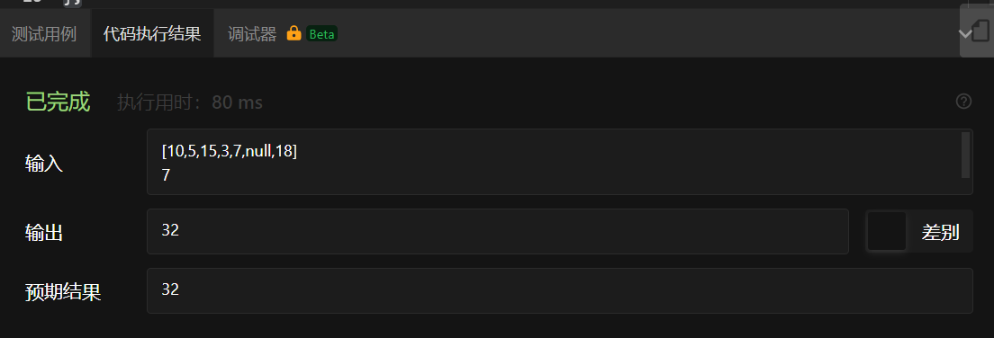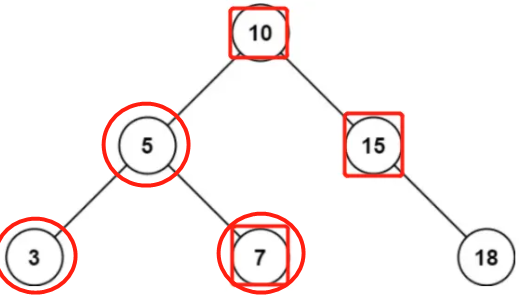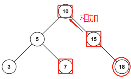 那么红框部分就是我们需要找到的[7,15]结点,相加输出32,那么该如何判断呢?