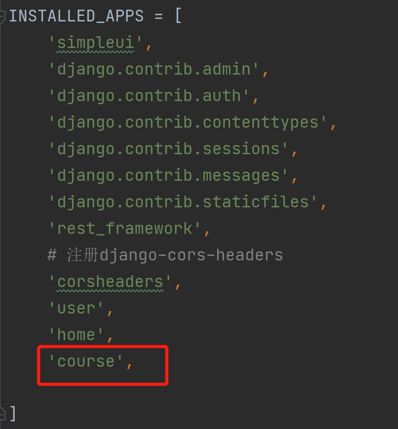 在apps文件夹下创建一个course的app,