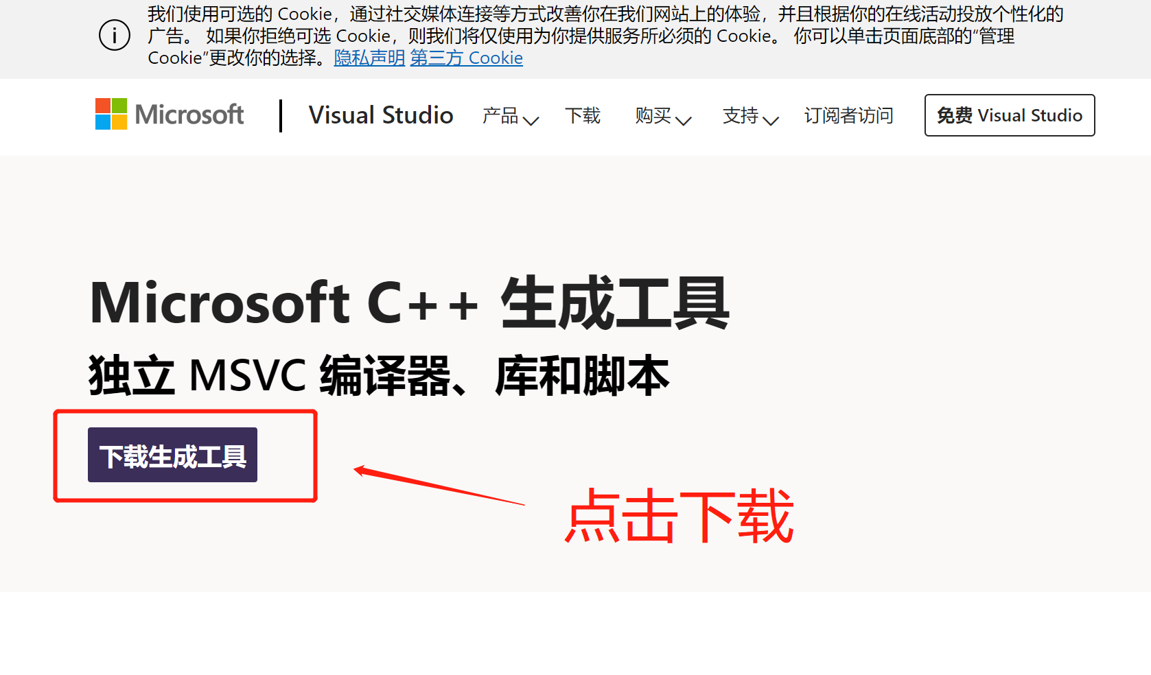 进入:https://visualstudio.microsoft.com/visual-cpp-build-tools/