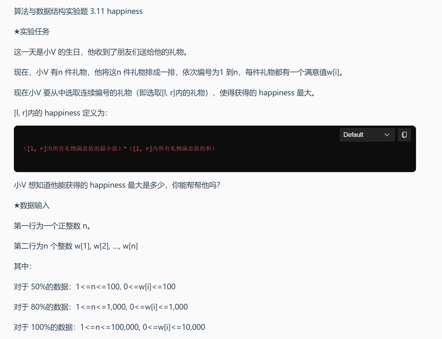 int current_happiness = total_sum * w[i]; // happiness计算公式
