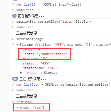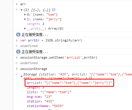 这样就把对象作为字符串存进去了,