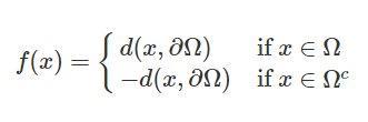 x表示一个点,Ω表示某个形状,∂Ω表示这个这个形状的边界。d(i,j)是距离函数。