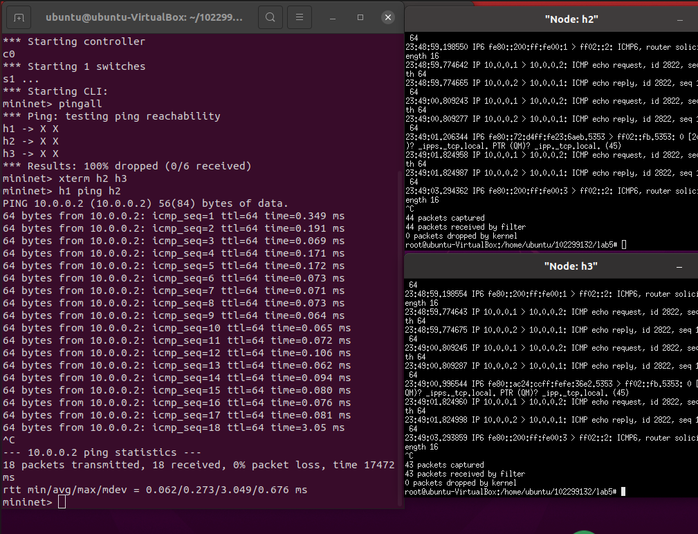 3.能够运用POX控制器编写自定义网络应用程序,进一步熟悉POX控制器流表下发的方法。