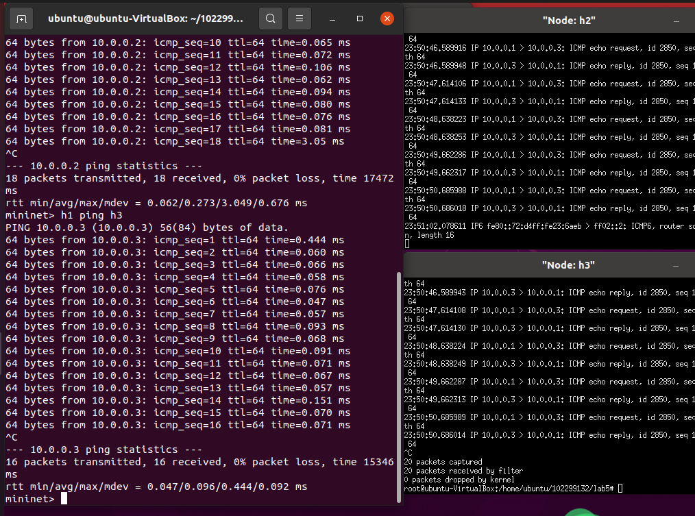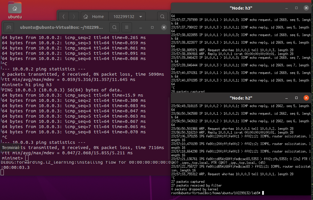 2.通过验证POX的forwarding.hub和forwarding.l2_learning模块,初步掌握POX控制器的使用方法;