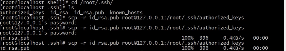 scp -r id_rsa.pub root@127.0.0.1:/root/.shh/autorized_keys 远程拷贝本机公钥到目标主机并修改名字为authorized_keys
