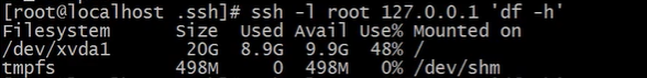 远程:ssh -l root 127.0.0.1 'df -h' 远程执行命令