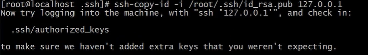 远程拷贝:ssh-copy-id -i /root/.ssh/id_rsa.pub 127.0.0.1 远程拷贝本地公钥,并追加到远程ip的authorized_keys文件中,不执行替换,直接追加到文件中,完成免密登录