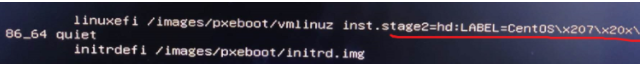 vmlinuz initrd=initrd.img inst.stage2=hd:LABEL=CentOS\x207\x20x86_64 rd.live.check quiet