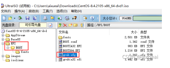 然后修改启动配置文件/EFI/BOOT/grub.cfg,具体如下: