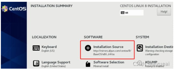 CentOS8设置网络镜像安装源:mirrors.aliyun.com/centos/8/BaseOS/x86_64/os