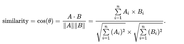 (4)计算两个向量的余弦相似度,值越大就表示越相似。