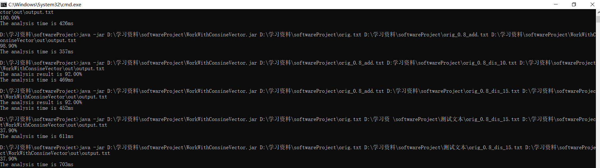 String f3 = "D:\\学习资料\\softwareProject\\WorkWithConsineVector\\out\\output.txt";