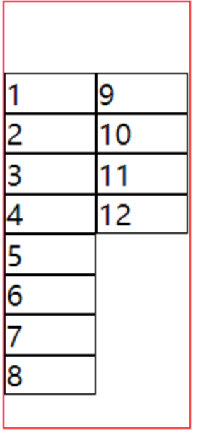 .wrap { display: flex; } .item { width: 50%; } ul { height: 200px; display: flex; flex-direction: column; flex-wrap: wrap; border: 1px solid red; } ul li { list-style: none; width: 50px; border: 1px solid #000; }