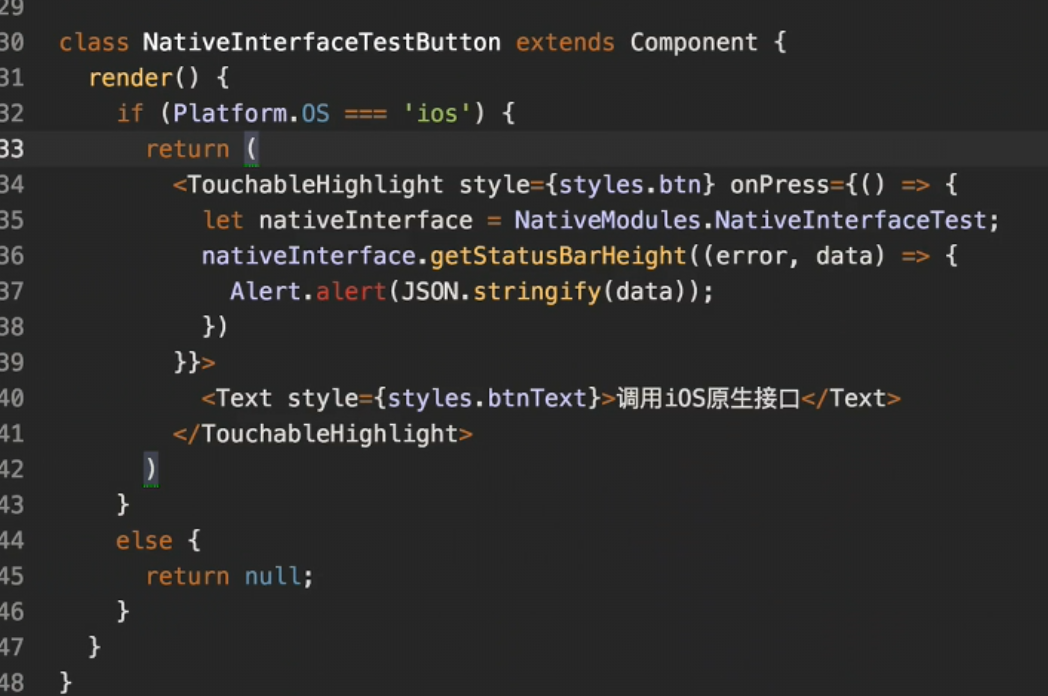 然后写个组件 NativeInterfaceTestButton 来调用 原生的