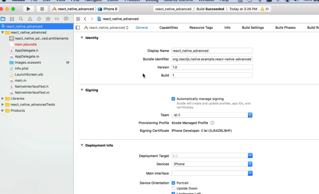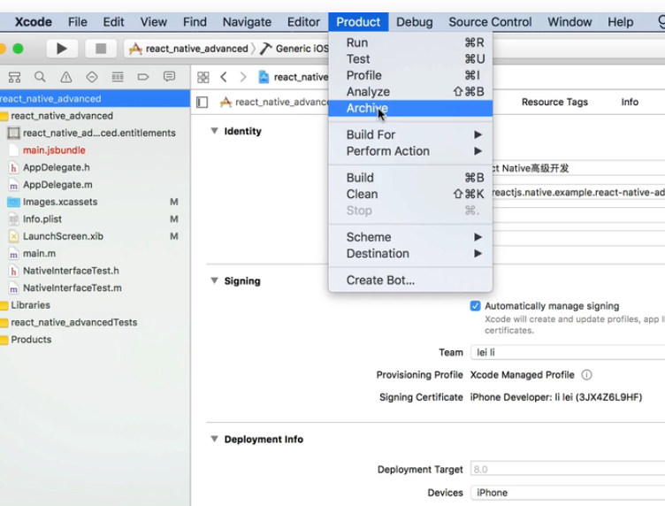 进入项目目录: 在终端中切换到React Native或者Flutter项目的根目录。 打开 Xcode 项目: 打开Xcode并在菜单中选择 File -> Open,然后选择React Native项目中的 .xcworkspace 文件。 步骤 2: 配置 Build Settings 选择 Target: 在Xcode中选择项目导航器(左侧导航栏),选择项目的Target。 配置 Signing & Capabilities: 在 Signing & Capabilities 中,选择 Automatically manage signing。 选择你的开发者账号。
