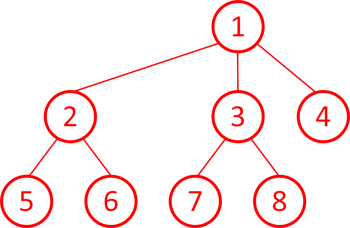 给定一棵有个结点的树,结点依次以1,2,...,标号。树的深度优先遍历序可由以下过程得到: