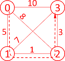 2. 若当前结点存在未被遍历的相邻结点则遍历,也即令当前所在结点为并重复这一步;否则回溯。