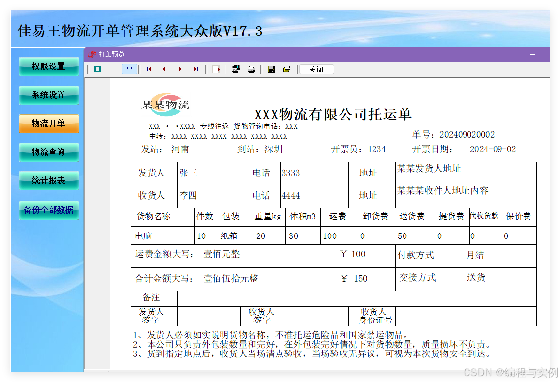 【开随货同行单需要什么软件?】佳易王物流管理系统:物流货运单软件程序实操教程 #物流 #管理简便 #货运单模板