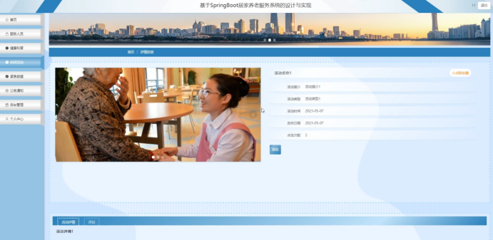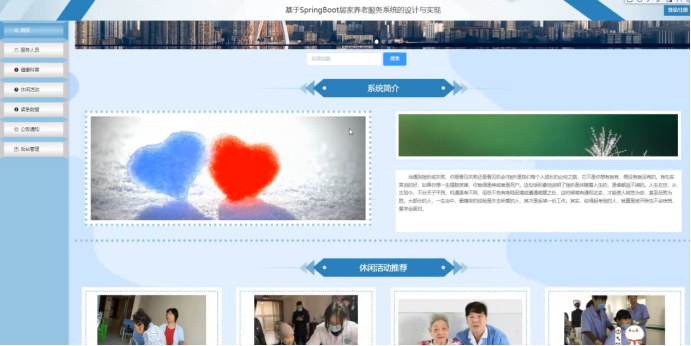 计算机毕业设计springboot居家养老服务系统的设计与构建 基于Spring Boot的居家养老服务平台构建与应用 Spring Boot架构下的居家养老服务系统构建