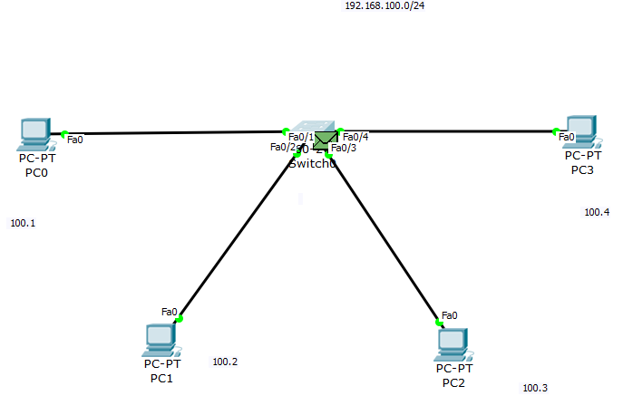 Switch(config-if)#ip address 192.168.100.5 255.255.255.0