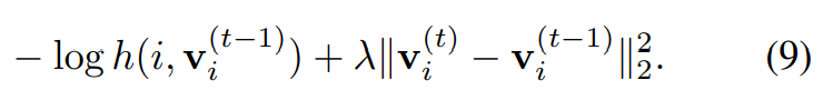 特征一致性差:memory bank存储了所有的图片,也就意味着模型训练了整整一个epoch才能把整个memory bank更新一遍,那也就意味着,当开始下一个epoch训练的时候,假如选了三个key,那这三个key的特征都是上一个epoch不知道哪个时间点算出来的特征了,这也就导致query的特征和key的特征差的特别远。为了缓解该难题,作者在模型中增加了一个约束Proximal Regularization,从而能让 memory bank里的那些特征进行动量式的更新(当前时刻的输出和上一时刻的输入有关),跟MoCo十分一致的。就是的想法