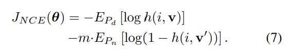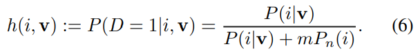 内容样本的m倍。然后特征v是就是Zi是正规化常数,假设噪声分布符合均匀分布,Pn = 1/n。我们假设噪声样本的频率data sample(用D=1表示)的后验概率是