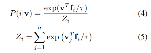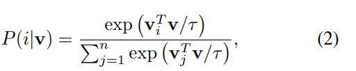 memory bank中的特征 v,相对于第i个类别的概率是: