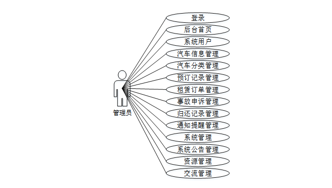 登录:管理员依据输入账号和密码登录系统,登录后能够访问所有管理功能,确保车辆租赁架构的正常运营和管理。