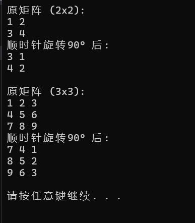 将一个二维N*N矩阵顺时针旋转90°,例如a[2][2]={1,2,3,4},旋转过后a[2][2]={4,1,3,2}。 - 教程