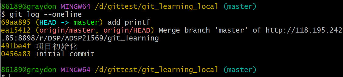 git log --oneline查看记录确实另外一个同事提交了代码。